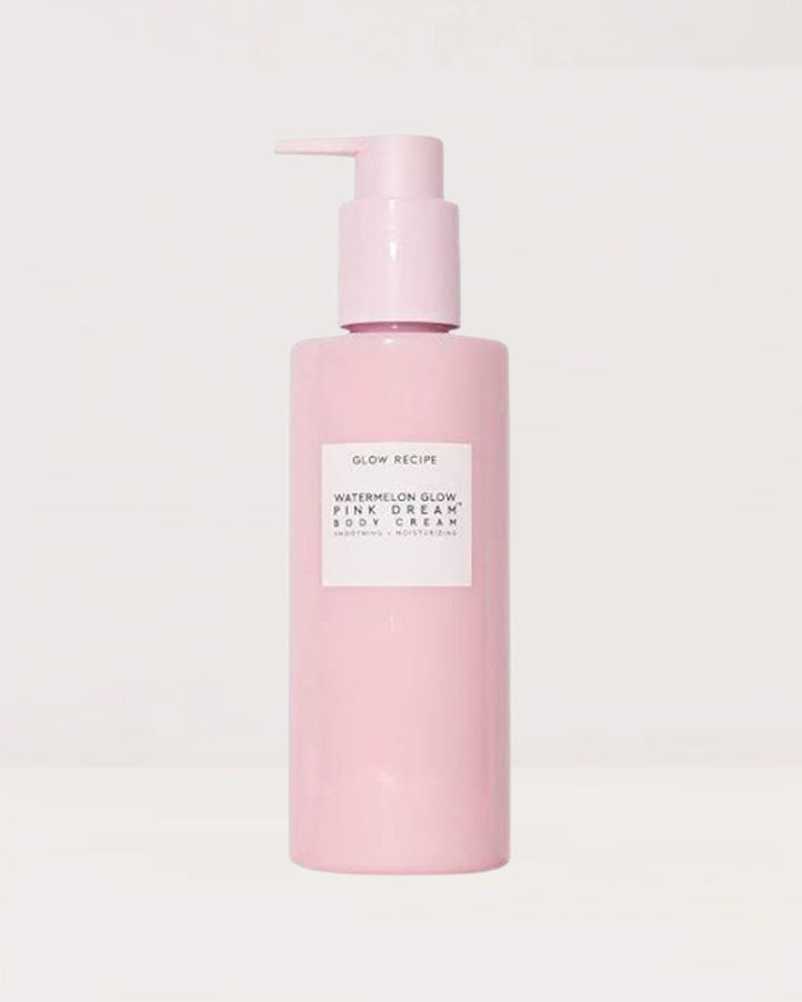 Wrap your body in Pink Dream Body Cream! Effortlessly smooth skin texture and hydrate your body all-at-once with the Watermelon Glow Pink Dream Body Cream. Treat your body with the same love, attention, and powerful actives found in your daily skincare routine. This luscious body cream is whipped with vitamin-rich watermelon seed butter, naturally smoothing hibiscus AHA, soothing watermelon extract, and multi-weight hyaluronic acid for deep moisture and ultimate comfort. The deliciously creamy lotion leaves skin baby-soft and with a healthy glow.
