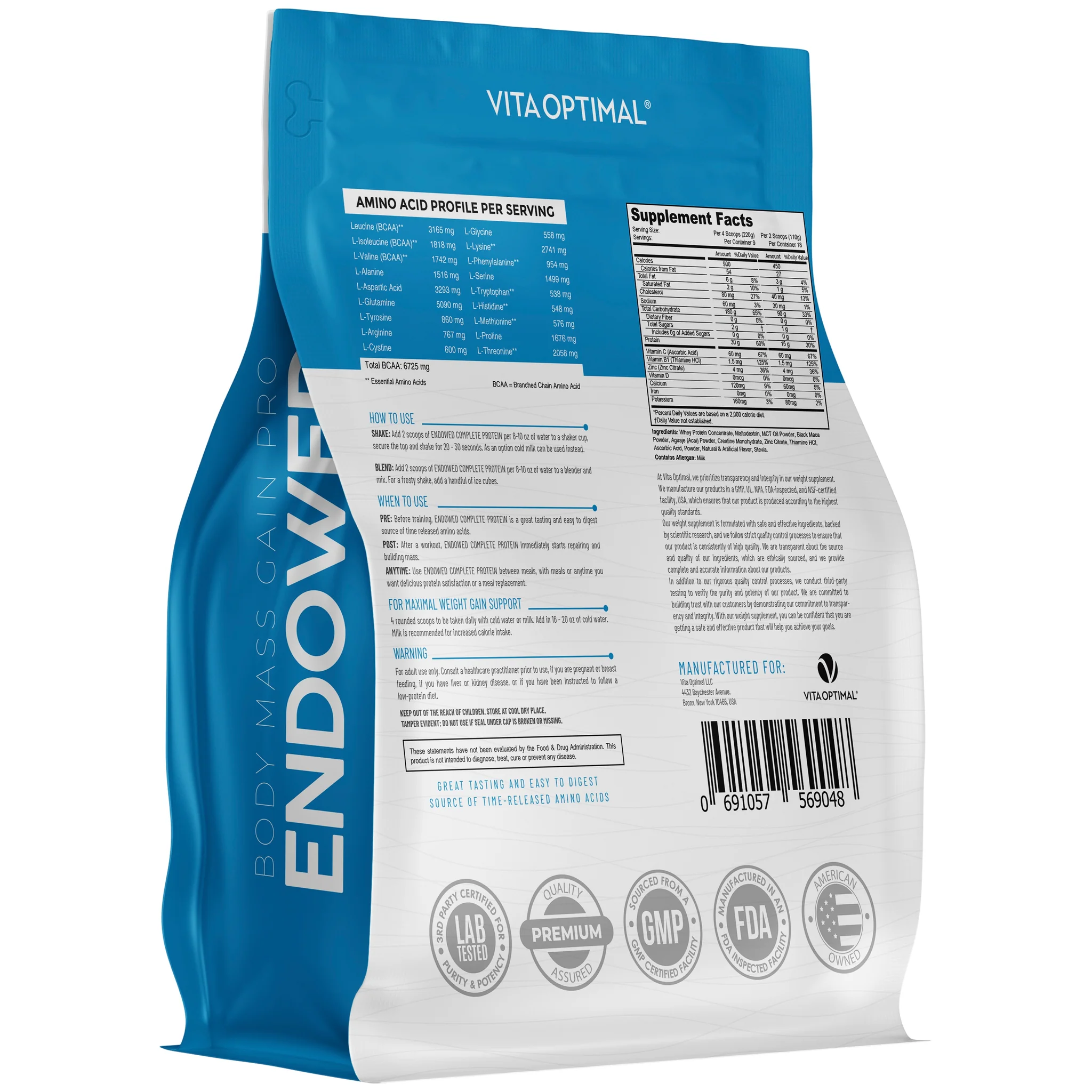 POST: After a workout, ENDOWED COMPLETE PROTEIN immediately starts repairing and building mass.